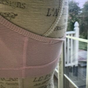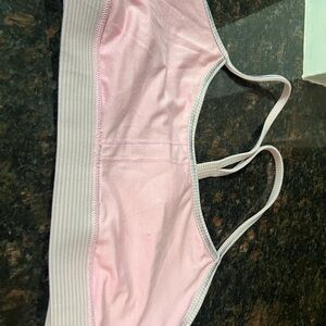 Comfortable and stylish sports bra. Ideal for workouts. Soft fabric with a sleek design.Pre-owned in good condition with sing of wear! Color soft pink with gray! Size 10! All of your questions are welcome. Note: The Bra will not come with inserts.