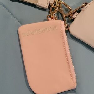 NWT Elegant key holder set by Lululemon Athletica. Features pink and cream pouches with a gold-accented strap. Ideal for organizing essentials.