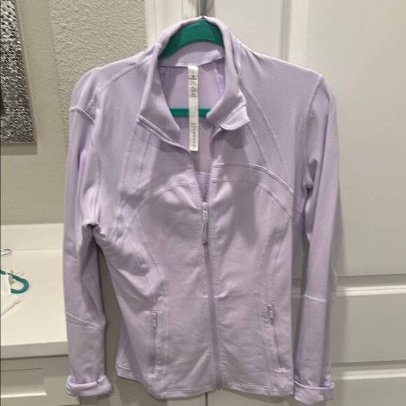 This purple jacket from Lululemon Athletica combines a sleek, fitted design with high-performance fabric, making it perfect for both workouts and casual wear. The moisture-wicking material ensures comfort and style, while the long sleeves provide added coverage.