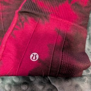 With Lululemon Like New Resale stamp. Bold dark cherry red and black tie-dye design. Ideal for active wear. Comfortable fit between a 6-10, medium sized as there is no tag nor size sticker inside the leggings.