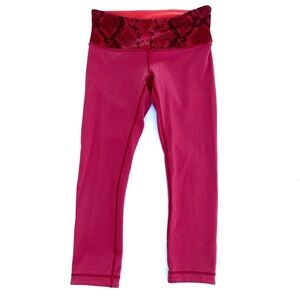 Gentle used condition. No flaws. Pink and orange reversible. Lululemon Wunder Under Cropped Leggings. Size 4