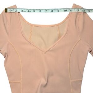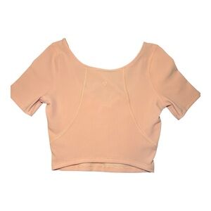 Lululemon Athletica Ribbed Contoured V-Neck SS Crop Top Malibu Peach Ribbed Sz 4