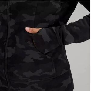 Sleek camo zip-up jacket. Ideal for everyday comfort. pre-owned smoke-free light fading