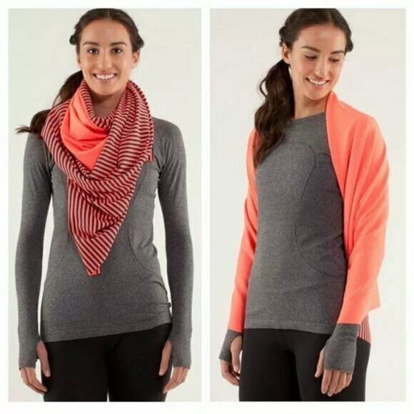 Gently Used Vinyasa scarf. orange and blue strip. super soft fabric.Infinity Reversible Scarf Wrap