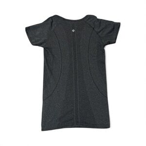 The Lululemon Run: Swiftly Tech V Neck in dark gray, size 8, is designed for high-performance athletic activities. Crafted with lightweight, breathable fabric, it features seamless construction to reduce chafing during intense runs or workouts. The V-neck design adds a stylish touch while providing enhanced ventilation. Its moisture-wicking technology keeps you dry and comfortable, and the added stretch ensures ease of movement. Perfect for both casual jogs and rigorous training sessions, this top combines functionality with sleek, modern aesthetics.
