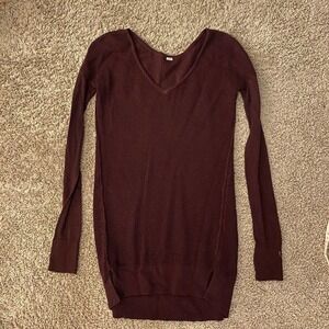 Lululemon Athletica V Neck Sweater Waffle Knit Long Sleeve wine red XS or 0-2