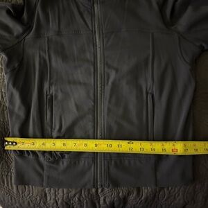 lululemon athletica lululemonjacket bomberjacket womensjacket charcoalgray grayjacket size8 size10 womensmedium athleisure sportylook yogaessentials traininggear fitnessfashion studiojacket croppedjacket meshback sleekdesign thumbholes zipperedpockets