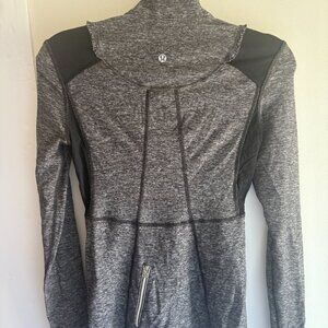 Lululemon Athletica Women's Run Your Heart Out Ruffle QuarterZip Black Gray 4