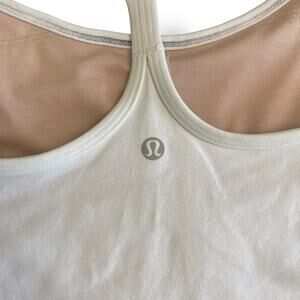 Lululemon Athletica Women’s White Y Strap Tank Size 6, built in shelf bra, pads removed**