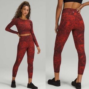 Lululemon Athletica, Wunder, Everlux fabric, Train, High-Rise, women’s Tight/leggings In Autum Red Denim Wash. Size 4, slight wash wear but, still in overall good condition.
