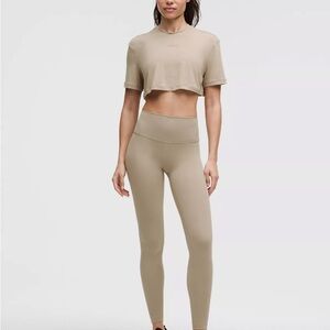 Very gently used leggings from Lululemon, without any issues, color Nomad. High-rise and 28” length. Internal drawcord (pictured) for adjustments. Everlux fabric. Official size chart included in pics.