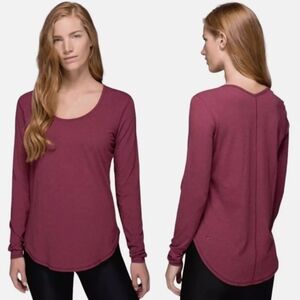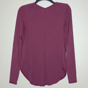 Lululemon Athletica Yogini 5 Year Long Sleeve Tee in Heathered Rust Berry with Thumb Holes. Vitasea Fabric blends Pima Cotton with LYCRA fibers for a super-soft feel and great shape retention. No Size Tag. Excellent Condition.