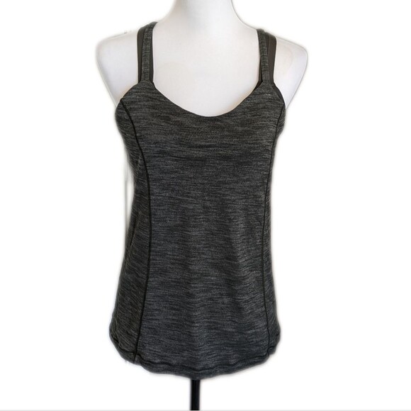 Lululemon Athletica athletic tank, olive green heather, built in bra (camo), 8