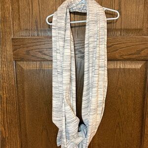 Elegant wrap with a subtle striped pattern. Versatile and stylish for any occasion. Space dye camo white silver spoon.
