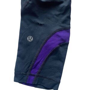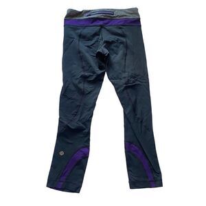 Lululemon Athletica women’s Black & Purple Run Inspire Crop II Leggings back zipper pocket Size 4