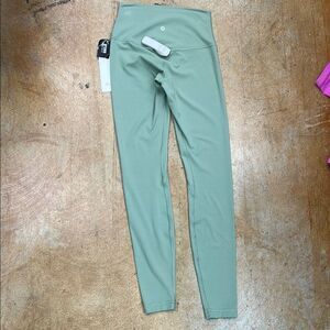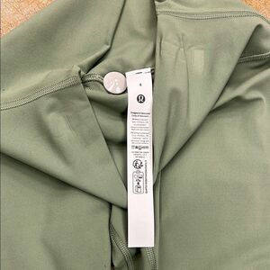 Stylish olive green leggings by Lululemon Athletica. Ideal for yoga or everyday comfort.
