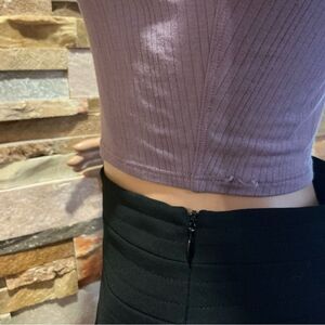 This chic crop top from Lululemon Athletica showcases a sleek, fitted design in a vibrant purple hue. The cut-out detail adds a modern twist, while the stretchy fabric ensures a comfortable and flattering fit. Perfect for both casual outings and active wear, this top is a versatile addition to any wardrobe. The seam on the side has come undone a little. See photo.