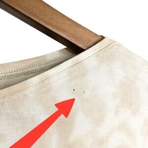 This item has been gently used with gentle signs of wear and two small pinholes near neckline as pictured.