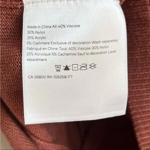 No size tag. See measurements. Approx size 8. Hint of Cashmere makes it softer and rust color perfect for cooler weather. Thinner material. The Lululemon Back To Balance Sz 8 LS Sweater in Rustic Clay is a luxurious and stylish garment perfect for women looking for a blend of comfort and sophistication. Made from a viscose blend with cashmere, this sweater features long sleeves, a crew neck, and an open back design, adding a modern touch to the classic pullover style.