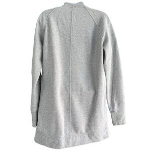 Lululemon Back To It Wrap Sweatshirt Jacket. Jacket is done in light gray called "Heathered Vapor." It's made of a cotton poly blend and is a woman's size 6. Jacket has original hang tag.