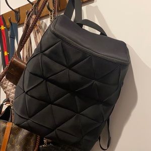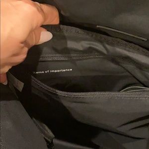 ****SOLD**** Discontinued quilted style. Black, barely used, large lululemon backpack. Anti-stain/anti-stink, thick material. Zipper at top, hidden zipper pocket in back, zipper interior pockets as well.