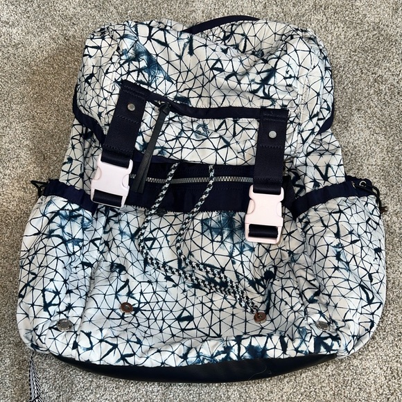 In good condition, has been freshly washed. A couple of marks in the pockets, but overall good condition. I believe it’s missing a pack that should be zipped to the front. The white clips are slightly discolored (pinkish).