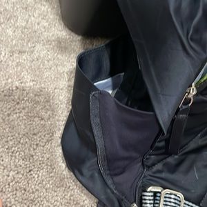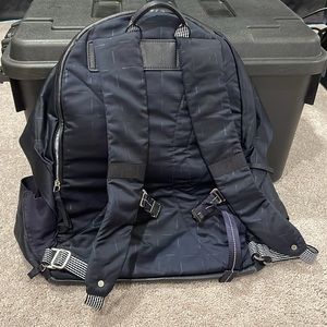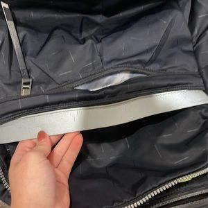 Super lightweight backpack with many pockets. Has light markings from use. See pictures. Doesn’t have shoe bag. Has so much life left!