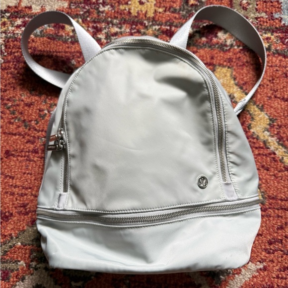 Lululemon City Backpack 11L Mini size. Has a main compartment with a small zip compartment and water bottle holder inside. Also has a bottom compartment that fits a pair of shoes. Used once