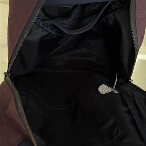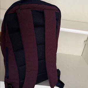 Great Condition Color is like a rich Garnet with Blue straps Has pockets and even a sunglasses protective hard pocket. Let me know if you need more information