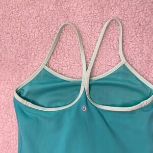 Lululemon Bali Teal Power Y Tank Top 6. Preowned and in excellent condition. Is a teal color with lighter teal trim and straps. Perfect for summer and comfy. Tank has shelf bra and is a size 6. Please see all photos. Approx measurements in pictures.