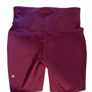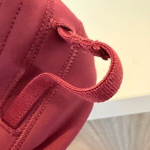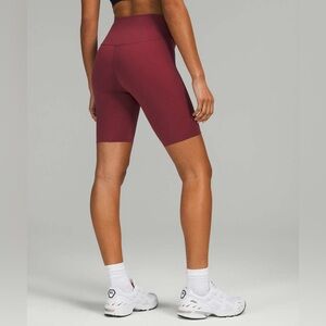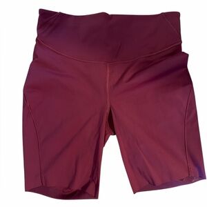 Comfortable high-waist bike shorts in a rich burgundy color. Smooth, stretch fabric offers support and freedom of movement. Wide waistband with internal drawcord for a secure fit. Ideal for workouts, running, or everyday athleisure wear.