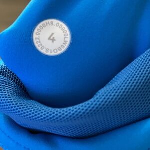 Experience ultimate comfort and style with these vibrant blue leggings from Lululemon Athletica. Crafted from a stretchy, moisture-wicking fabric, they feature a high waistband for added support and a unique scrunch detail at the back for enhanced fit. Perfect for yoga or any athletic activity, these leggings offer a sleek, seamless look.