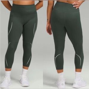 Lululemon Base Pace High-Rise Reflective Crop 23” Smoked Spruce Size 8 EUC