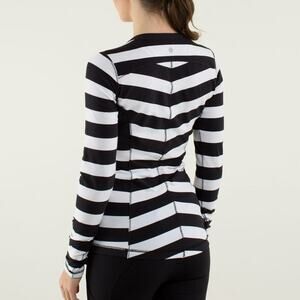 Lululemon Base Runner Long Sleeve Size 6 Bold Stripe Black White Rulu