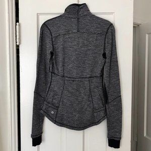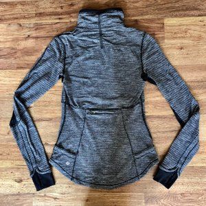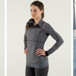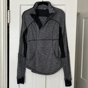 EUC lululemon baserunner 1/2 zip in the heathered black/grey pattern. Warm textured Rulu fabric. No stains or rips. Great for layering and all types of exercise. Has thumb holes, hidden back zipper pocket, and reflective details