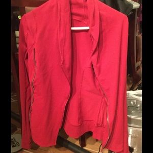 Gorgeous cranberry color. Can wore multiple ways with zipper.