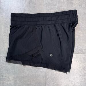 Lululemon Black Anew Running Shorts Womens Sz 4 Elastic Waist Mesh Trim Mid Rise