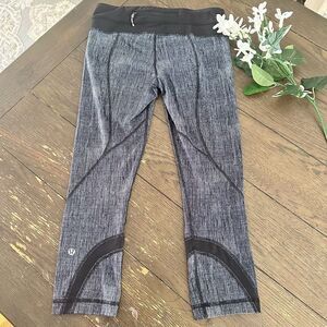 Lululemon Black Blue Heathered Print Capri Leggings Activewear size 4
