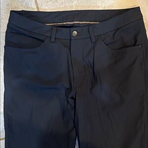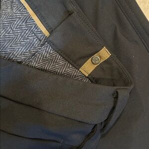 Gently worn Lululemon Black Commission Slim Pants men's size 32x28. Stretch technical twill fabric, black, button at waist with zipper fly, five pocket style with 2 extra hidden stash pockets that zip closed, slim leg opening, lulu logo on back of leg, seamed across back of knees. There is a mark on the front of the leg where the back seam is- I'm not sure if it's from rubbing, hard to see. Otherwise good condition. Offers accepted!