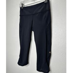 Lululemon Black Crop Leggings Mesh Calf Detail Yoga Pant Legging 4