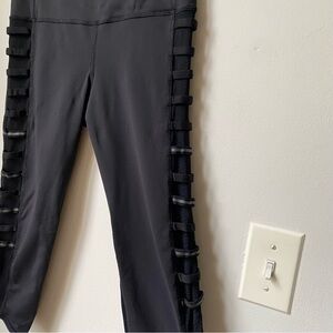 Sleek black leggings with side detailing. Perfect for workouts or casual wear. Comfortable and stylish.