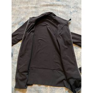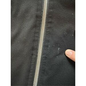 Black full zip athletic jacket from Lululemon. Big, cozy, funnel neck collar helps keep your neck warm. Zippered waist pockets. Thumbholes in sleeves. Gently used. Light pilling and wear, a few light spots on the fabric (Please see photos for reference)