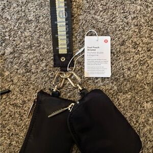 Black dual pouch wristlet with branded strap. Features secure zippers and metal clasps.new with tags!