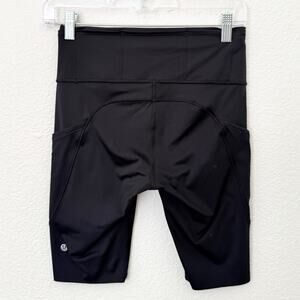 Lululemon Size 6 Black Fast and Free High Rise Workout Shorts Biker Pockets 8"