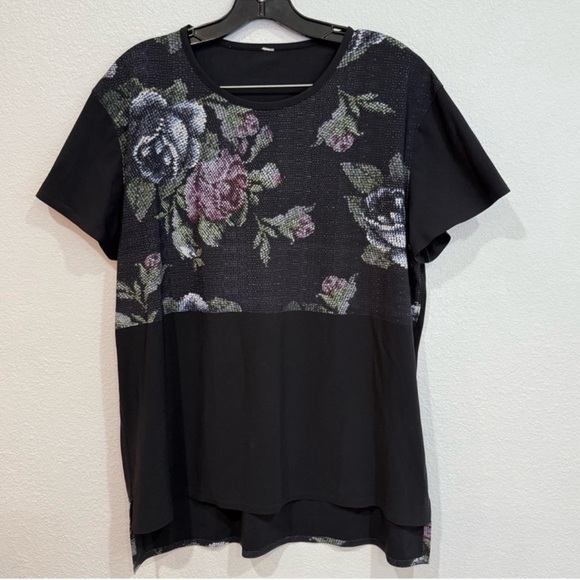 Lululemon Black Floral Pixel Garden Party Short Sleeve Snapshot Tee Size 12