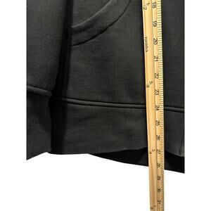Classic Lululemon athleisure zip-up in a soft cotton blend. Features ribbed cuffs/hem, kangaroo pockets, and logo detail on back. Great for layering to/from the studio or casual wear.