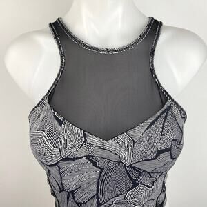 Lululemon Black Get It Om Mini Dottie Tribe Mesh Racerback Sports Bra Crop Top S