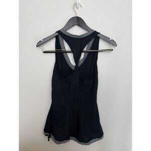 Lululemon Black Gray V Neck Racerback Tank Top Stripe Drawstring Athleisure Yoga