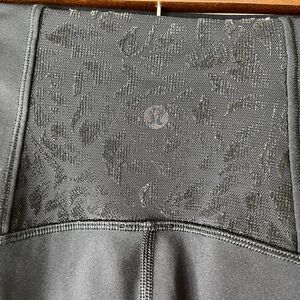Lululemon Black High Waist Floral Velvet Mesh Detail Leggings Size 4 #391