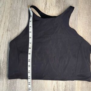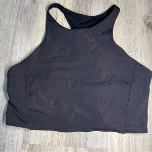 Stylish black high-neck crop top. Perfect for workouts or casual wear.